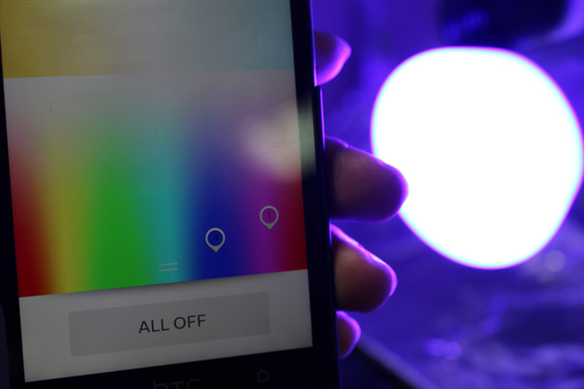 燈泡的顏色控制設定相當的即時,而且會隨著指標燈泡進行選擇,燈泡 1 是粉紅色,燈泡 2 則可以是藍色。