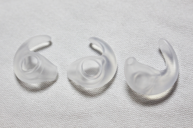 關於 Jawbone New ERA 耳塞設計,貼心地提供了不同的尺寸給使用者做使用,而且同時有左耳和右耳可以選擇,材料方面為矽膠材質。