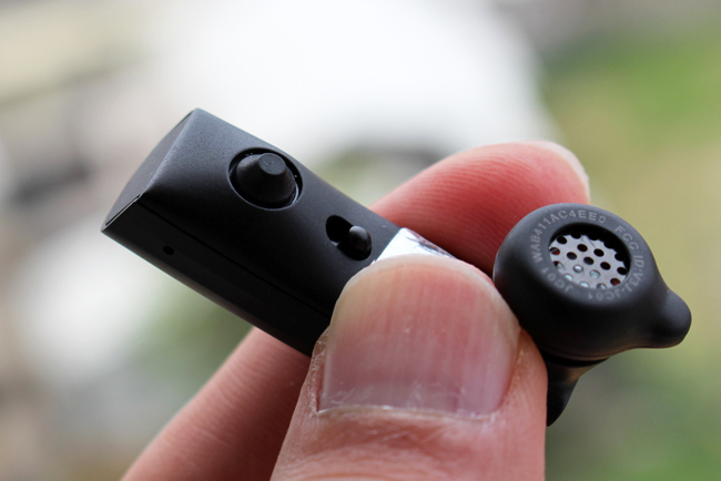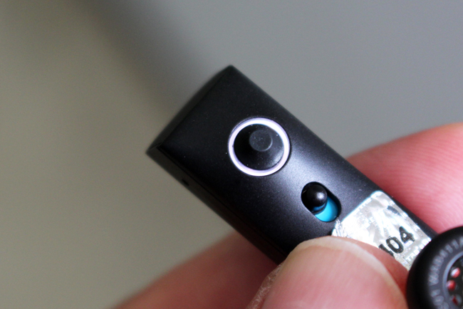 側邊貼近耳朵的部份,有 LED 狀態顯示環與開關。