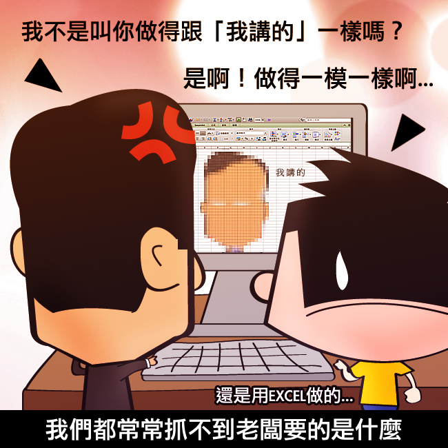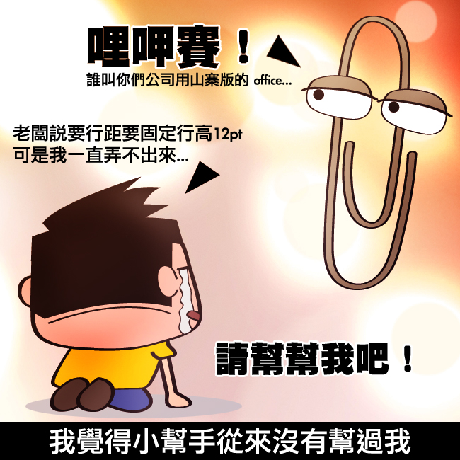 在公司上班,就算你什麼都不會,但你一定要把辦公室軟體學會,因為老闆就像老師一樣每天都會考你的(淚)。有人說用了辦公室軟體可以有效提昇工作效率,但其實我們的生產力都浪費在修改這些該死的檔案上。我們是不是應該抬起頭來看看做這件工作的目的和本質,而不是熬夜多花了 3 個小時在修改段落行距,害我們常常弄到整個熊貓眼…