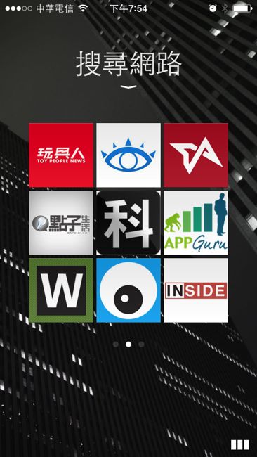 在 Opera Coast 是使用3 x 3 的塊狀瀏覽方式,除了內建的幾個優質網站以外,使用者還可以透過自定來依照自己喜愛,利用上方的搜尋功能增加常瀏覽網站。在所有的操作上都可以透過一指滑動來進行。長按空白處甚至還能為其換上喜愛的桌布。