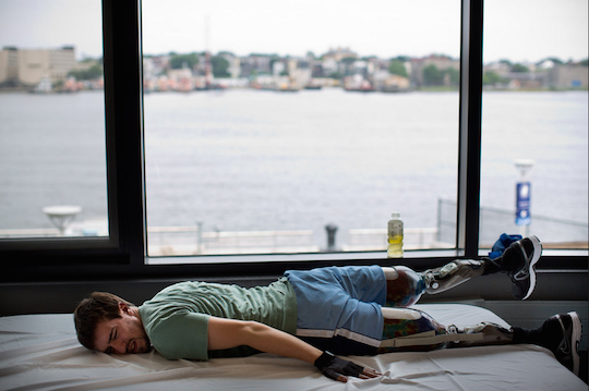 還有一種就是專題性的人物報導,這張照片也是今年普立茲獎獲獎作品之一,波士頓爆炸案生還者的復健記錄,同樣是由紐約時報的攝影記者所拍攝,這種新聞專題照片與紀實攝影其實大同小異,攝影記者必須貼近受訪者的生活,最棒的照片就是受訪者完全沒有意識到鏡頭的存在,這也是這類型最困難的部分,一般人都會有鏡頭意識,攝影記者該如何讓受訪者願意這麼貼身拍攝自身的情緒與生活,且又能讓他們感受不到自己的存在,此外,這種專題困難的地方還有整個作品的主題辯證與呈現,該如何拍攝能忠實的呈現,該如何拍攝能扣緊專題走向,該如何拍攝能讓作品有更多的情緒,這些都是考驗執行專題的攝影記者的地方。