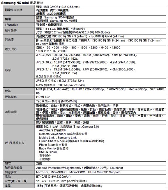 NX mini 在實際操作上的確相當順手,並且內建著已經可以說是隨身相機所具有的美肌等多種智慧型場景,更詳細的規格可以參考一下官方提供的規格表。