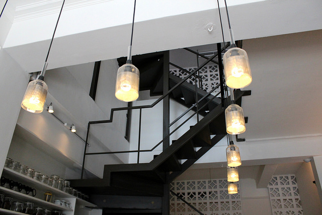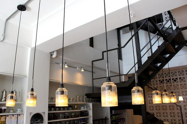 延續著台北道南館的風格,在台南新館這裡也高掛著利用虹吸壺上座改裝的吊燈,這玩意商品化的話應該可以狂銷熱賣啊!妳說是不是啊?