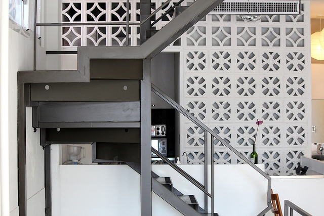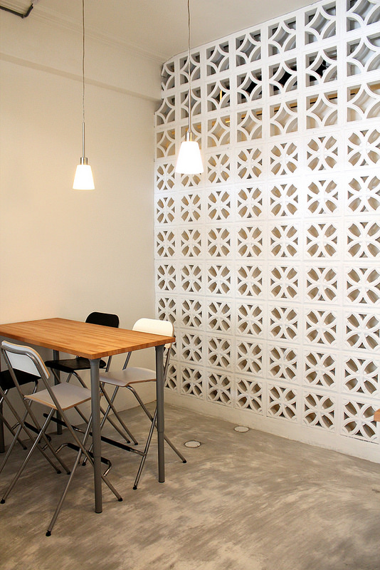 在整修過程中,除了保留外牆原有的空心磚,小鬍子老闆還找來數種不同圖案的空心磚,運用在室內,呈現出一種幾何圖形的美感。