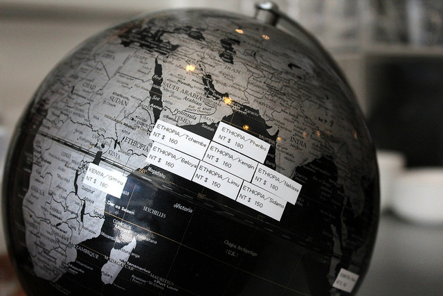 利用地球儀來當作MENU可是小鬍子老闆的經典代表作,妳可以發現這裡的單品咖啡都是用很實在的價格在供應,不少 Ninety Plus Coffee 的品項,像是衣索比亞 Tchembe、Kemgin、Nekisse、Beloya、Pheribo,單價都不超過兩百元。