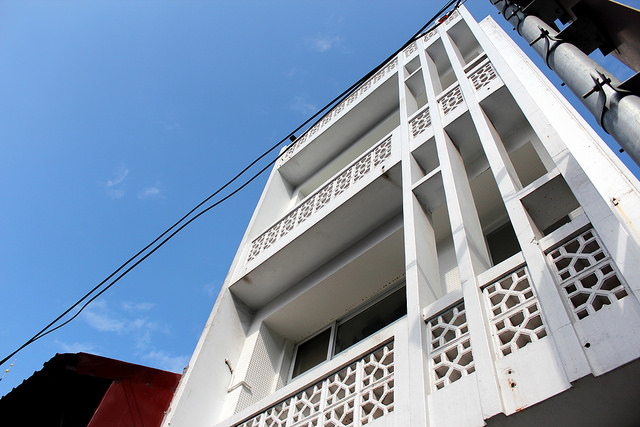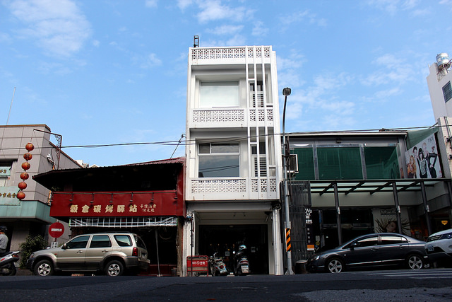 妳絕對可以在第一眼就認出道南館的台南新館,夾在鼓倉碳烤和日本料理店中間,這棟漆白色空心磚外牆的三層樓建築物,有點鶴立雞群的感覺,而且外牆沒有懸掛招牌,保持整體的俐落乾淨,很棒!。屋齡約莫五十年,跟小鬍子老闆差不多的歲數。