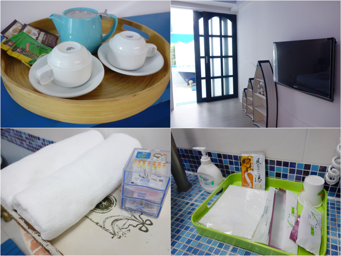 另外該有的房內備品也都準備完善沒有少,浴室甚至還有牙線棒、棉花棒等等,讓客人泡澡舒服還附了風侶入浴劑,舒服~