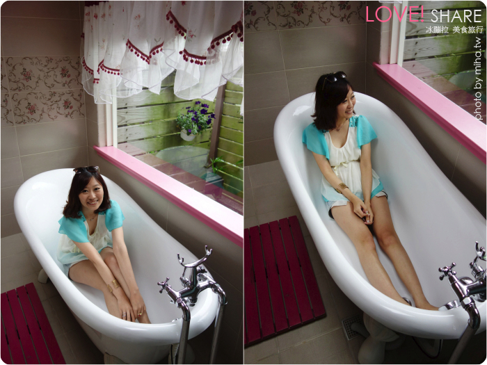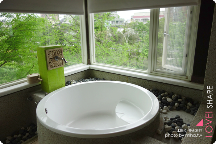 接下來這個開放式浴室是不是很尖叫!!!!邊泡澡可以邊看外頭風景,在二樓外頭又種滿了樹也不會被看光光,大浴缸還可以兩人或是全家一起洗澡耶~好幸福喔!!!難怪他會變成超級無敵熱門的房型,這次沒住到真的太難過了><