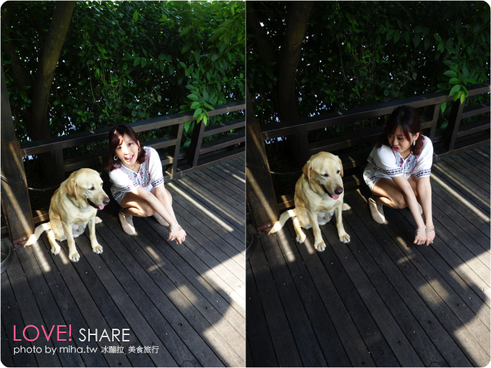 前門庭院前的草地很寬廣,雖然天氣超熱太陽好曬,但在這裡真的會很想跑來跑去的玩耍,不想浪費任何時間,拿著玉米碎屑跑去找寵物雞哈哈哈,因為我實在太好動了朋友說都拍不到喇><