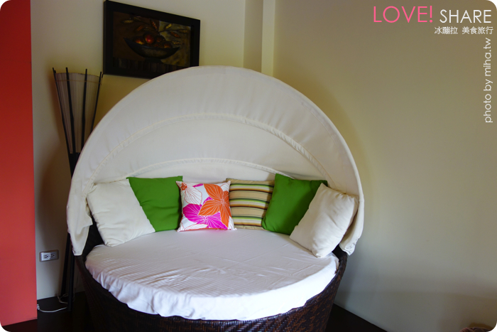床已經夠舒服讓我看了好想飛撲了,旁邊還放了發呆椅,這實在有夠好躺,可以待在這裡都不用走沒關係,而且其實主人知道很多人來宜蘭都帶著小孩,這個發呆椅子其實很大張,可以當上小孩的床沒問題喔~