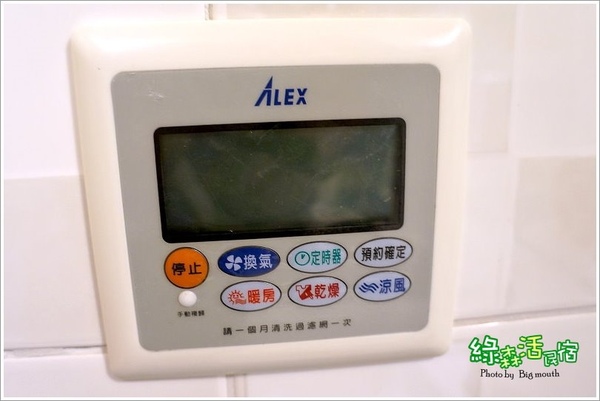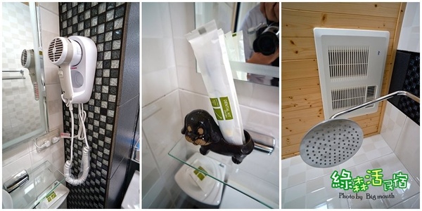 ▼吹風機是壁掛式的,可以邊照鏡子邊吹頭髮兒唷!特別的是除了按摩式蓮蓬頭之外,還有暖氣設備,讓來客在冬天時洗澡也比較不會著涼。