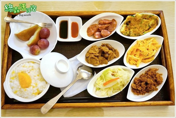 ▼早餐都是老闆娘親手做的唷!地瓜稀飯、高麗菜、香腸、麵筋、九層塔蛋、筍乾與肉鬆,整個超級適合搭配稀飯搭!!一旁還附有水果與飲料,十分大心!!