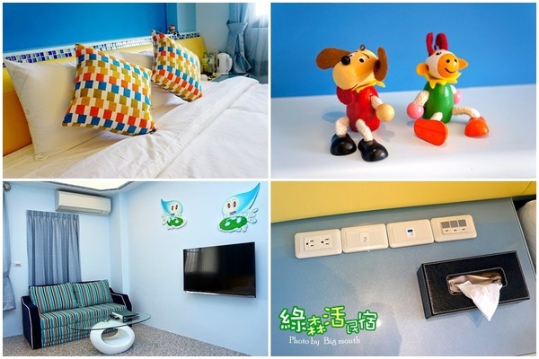 ▼一進到「綠森活民宿」裡,溫馨又繽紛的迎賓大廳讓人看了心情好好,牆面上掛著大大的「綠森活」,感覺頗有文藝氣息。