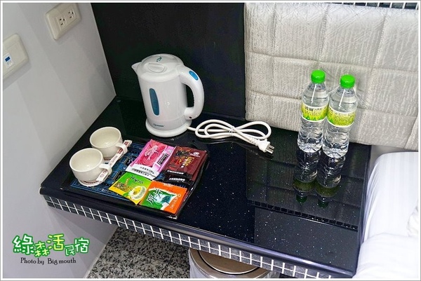 ▼一旁還有電水壺、沖泡飲品與礦泉水,這樣半夜肚子餓睡不著也不用怕啦(喂~)
