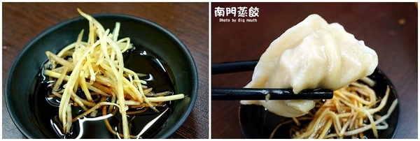 ▲原來薑絲配烏醋是蒸餃的好捧油啊!!老闆特別建議大口蒸餃可以沾薑絲加烏醋一起吃,吃下去果然皮兒特別Q,也更能提襯蒸餃的鮮味兒。