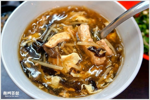 ▲ 再來不得不提到他們家的酸辣湯,是大口很愛的一道湯品,裡面遵循古法放了黑木耳、香菇、筍絲、豬血、板豆腐等配料,微微勾芡的湯頭加入香氣十足的鎮江醋, 整個更為提味了,微酸微辣的酸辣湯喝下去頗為順口,許多配料的甜味在嘴裡迸開來,喝下肚嘴尾還有淡淡的醋香,整碗湯料多實在,實在是太好喝了!!雖然喝起 來很飽但大口還是沒浪費的把他喝光光。