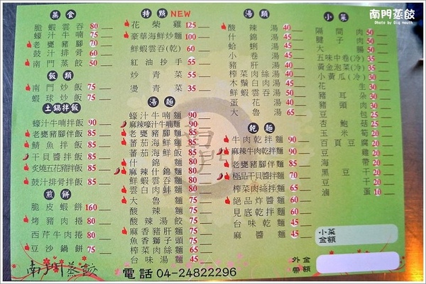 「南 門蒸餃」老闆沿襲父親的好手藝,每一樣都遵循古法,再輔以創新口味,將傳統餐點注入新生命;除了新菜色老甕豬腳、花柴雞、豆沙鍋餅令人驚艷外,大口也很愛 吃他們家的酸辣湯、豪華海鮮炒麵、蒸餃與小菜,每回來造訪總是會有新的驚喜;老闆不斷努力改良與創新,就是希望帶給客人全新的美食感受,除此之外還能吃到 令人懷念的懷舊手路菜,所以傳統與創新並進,在這份堅持下,激盪出不同的味覺饗宴。推薦給來台中玩耍的捧友們,有機會不妨來試試邪惡派系的總鋪師手路菜, 會讓人回味無窮唷!!