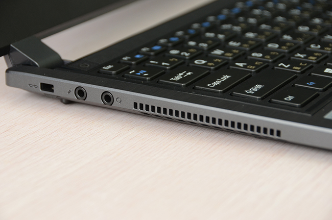 散熱區改移到左邊這樣的設計是為了不讓使用滑鼠的右手有燙傷的可能。在輸入輸出介面部分2個2瓦特喇叭單體,內建Sound Blaster立體音效系統,一個麥克風輸入孔,一個內建麥克風,一個耳機(喇叭)輸出孔