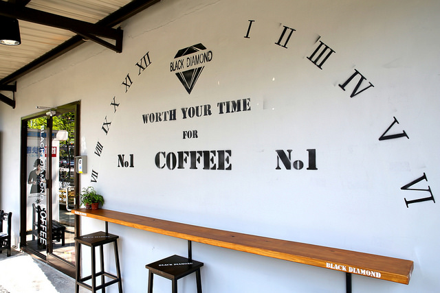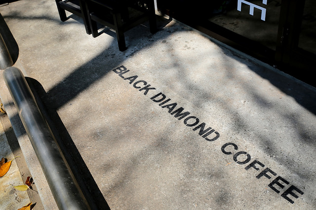 清水模的水泥地上也噴上店名”BLACK DIAMOND COFFEE”,很有街頭塗鴉的感覺。