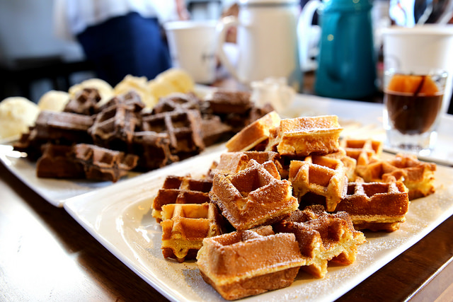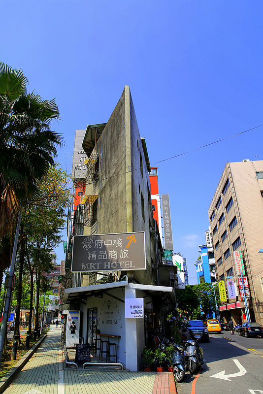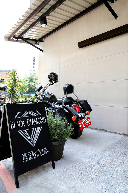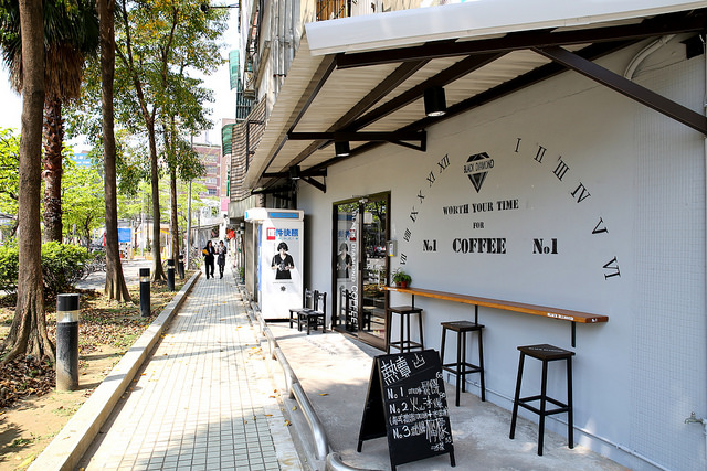黑鑽咖啡第二個營業據點就選在府中路1號,距離捷運府中站二號出口步行只需要2分鐘的時間,而且是造型很特別的三角窗邊間,咱們板橋最近幾間很火紅的早午餐,似乎也都是選在這樣形狀的店面。而在靠近縣民大道這側,與馬路相隔著椰林綠蔭,有種鬧中取靜的感覺,超適合這類型的小咖啡館。