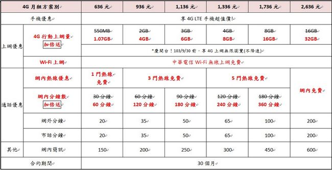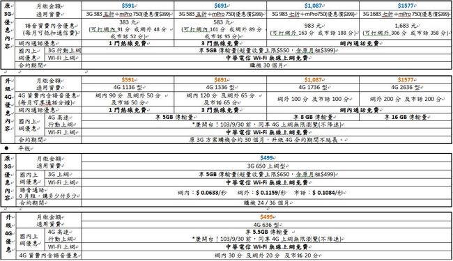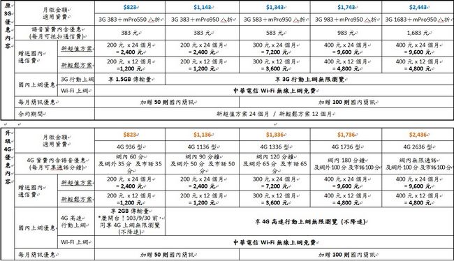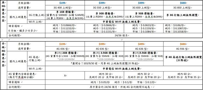雖然升級的方案還沒有開通,不過中華電信也提供了升級相關資費提供參考!