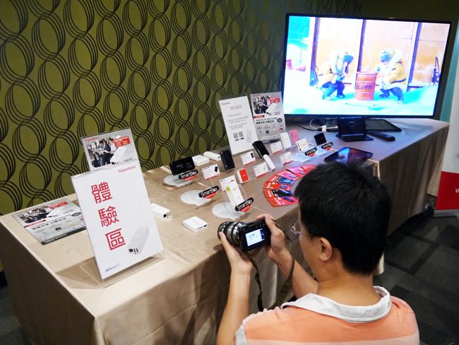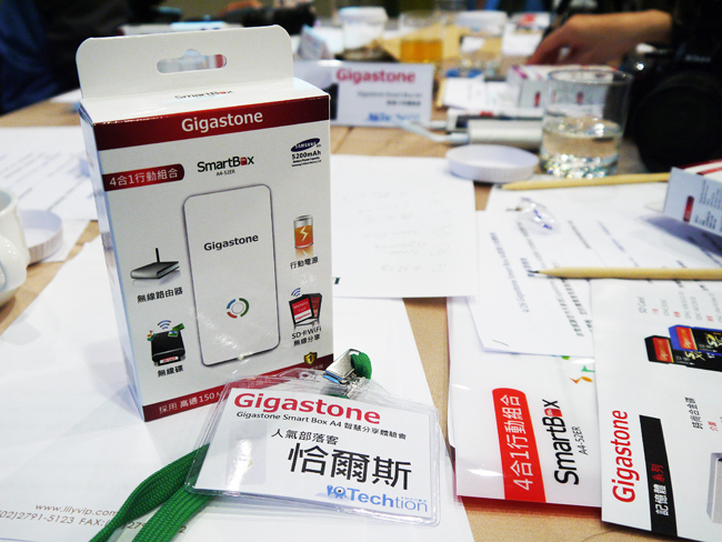 當然現場也展示了很多 Gigastone 的產品,還有今天的主角 SmartBox A4 無線存儲充電寶。這個產品我在參加體驗會時就有先瞭解一下,是個結合無線路由器、無線傳輸、無線行動碟和行動電源功能的產品,整個感覺出門帶這一顆就夠了,晚點來跟大家詳細介紹啦!