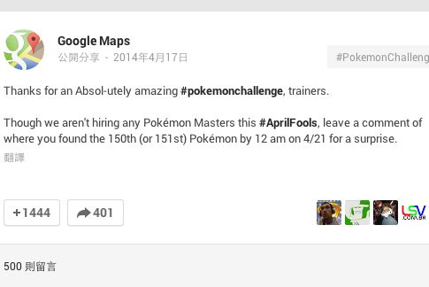 在前日 Google 於 G+ 發出通知,雖然沒有真的聘請神奇寶貝大師( Pokemon Master ),但將對已經找到 150 或是 151 隻神奇寶貝的朋友送出神秘驚喜。