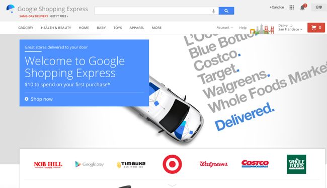 不論是想要買台遊戲機、裝飾蠟燭,甚至是洗碗精或是小朋友的尿布通通都可以從電腦或是手機(Android 和 iOS)中的 Google Express 官網上搜尋,直接從想要購物的店家中挑選到想要購買的商品後,Google Express 便會立即進行處理為消費者進行快遞送件服務。