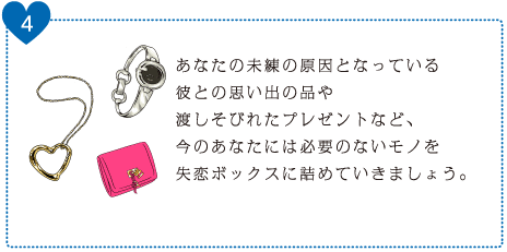 接遮著將前男友或前女友相關的物品打包進心碎箱。