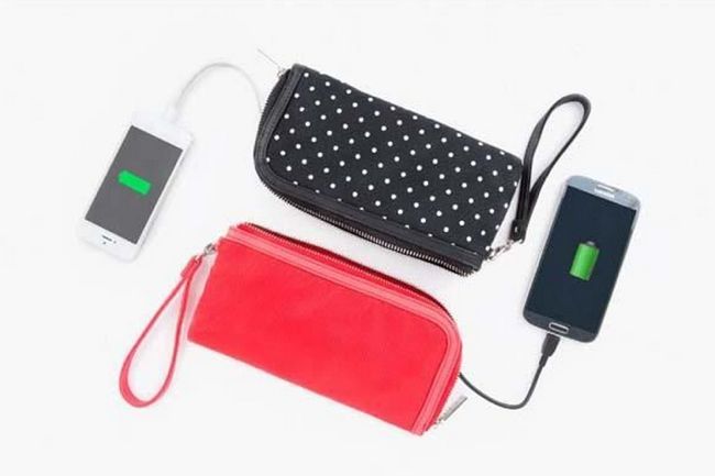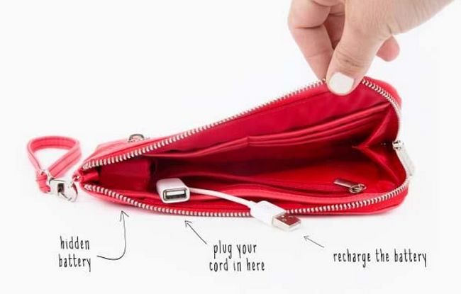 首先是為女孩們設計的充電手拿包。每次出門為了要裝上手機、錢包、化妝小品等等,如果還要放上行動電源,是不是不自覺的包包就越來越大?這款有著 2,600 mAh 的可愛造型手拿包,有著黑、紅兩款設計,並且在內部口袋處附上了手機的傳輸線,讓女孩們可以在外出時省下了行動電源的體積空間,攜帶更加便利。