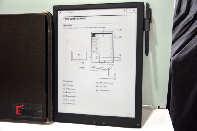 Sony 這款 E-ink 平板「DPT-S1」可以完美顯示 A4 刊物的平板,採用 13.3 的螢幕。由於採用 E Ink Mobius 技術,與同尺寸的玻璃材質相比,Sony E-ink Tablet 顯示面板的重量還不到一半。