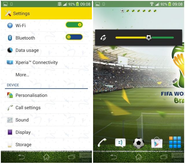 根據國外論壇表示,目前已經在Xperia 主題中推出世界盃足球賽的主題系列,並且釋出一連串的主題照片。