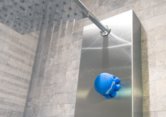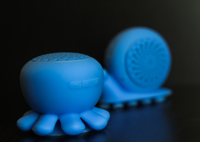 想在浴室洗澡時邊聽音樂邊唱歌嗎?看膩了揚聲器死板板的外型嗎?kickstarter網站正進行其中一件籌資專案,一種化為可愛海洋生物的防水揚聲器,經由藍牙連接,把它們固定在任意平坦又光滑的表面,伴隨快樂的淋浴時光。