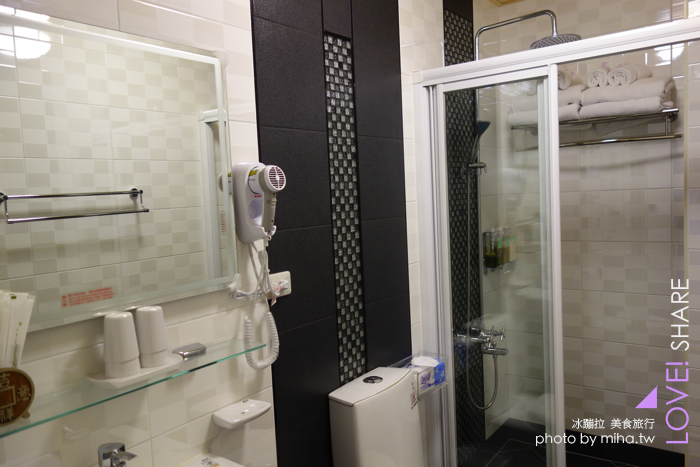 全部逛完我還是最喜歡我們黑白分明這間房間,雖然空間小,但兩人住都還算舒適,躺床看電視實在舒服喇~