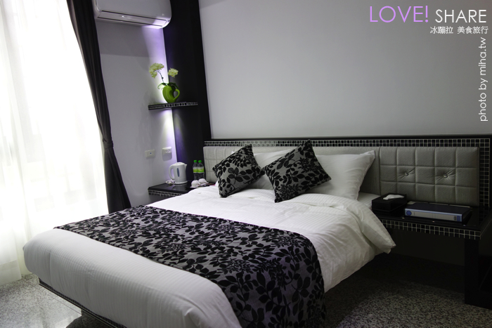 這裡因為是住家,不是專門蓋來當民宿的,房間就真的比較居家,很像真的回到家的感覺空間也沒很大,可惜了點。不然他這種黑白精品裝潢我很喜歡,男生女生都可以接受,採光又超好,會被陽光晒醒。