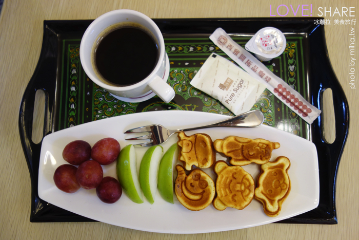 一到民宿就先看到桌上早就放好等待我們準備的下午茶,是自己煮的咖啡、水果還有現烤的小動物鬆餅,下午茶好好吃水果好甜,咖啡也很好喝耶是用好的咖啡豆唷!