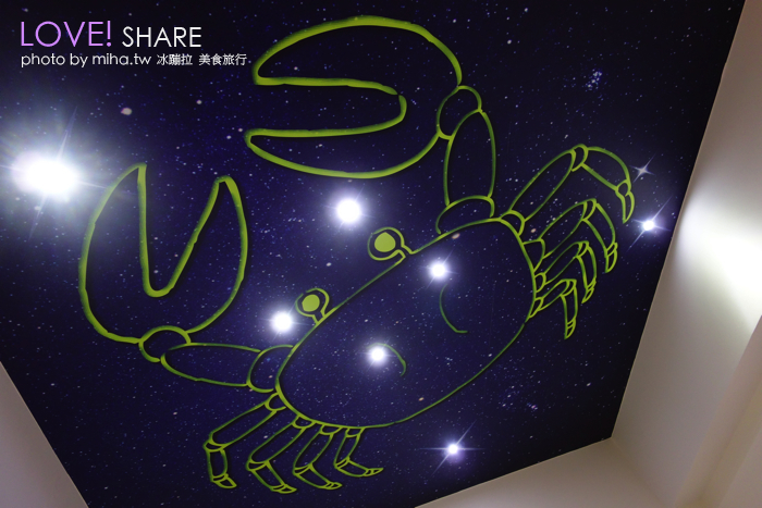 因為綠森活剛開不久,我們到的時候都還沒有房客,再度發揮每間都要拍的精神,通通拍給你們看。發現天花板是星空還有星座,問了才知道這是女主人跟他老公的星座喇~所以二樓跟三樓都有星空天花板喔!