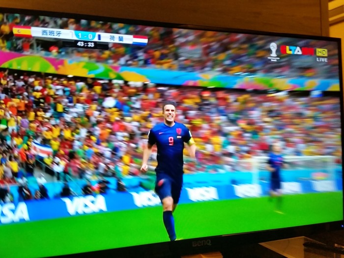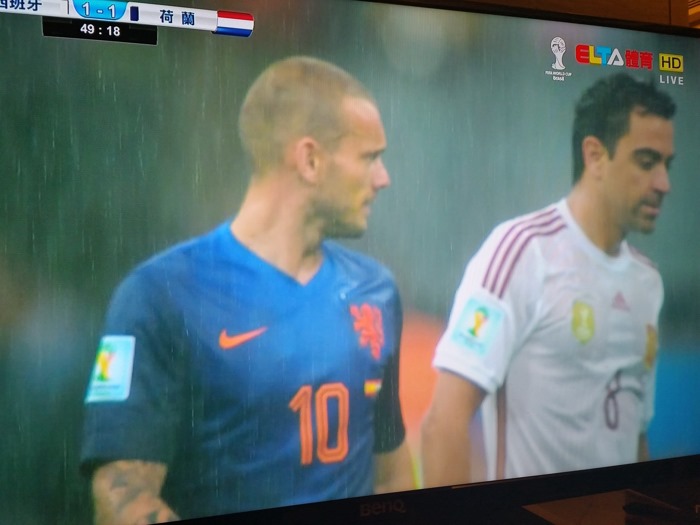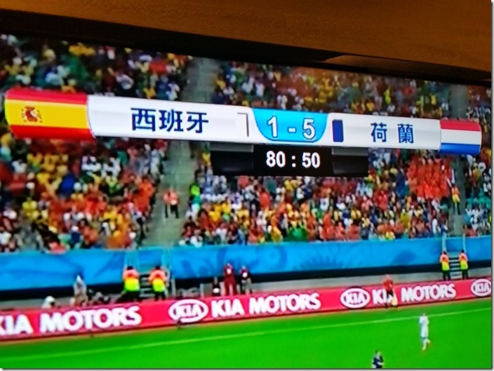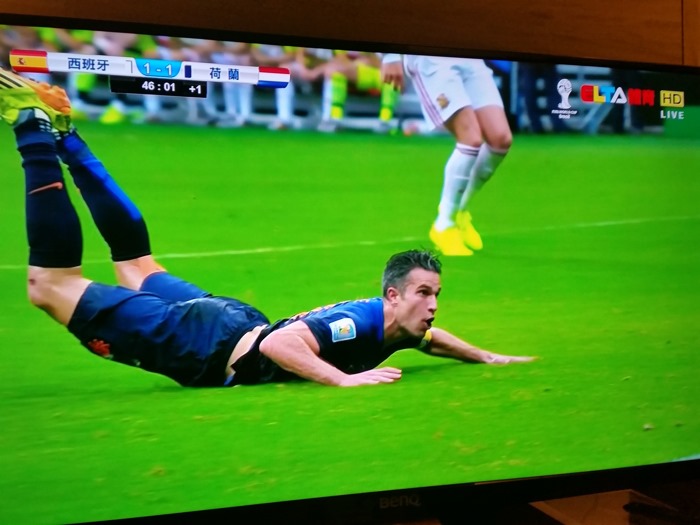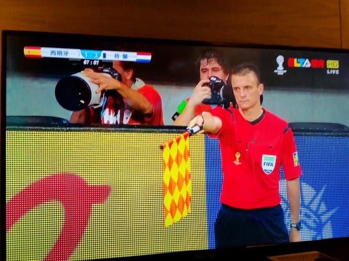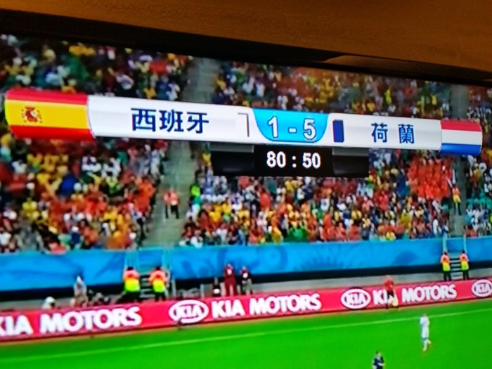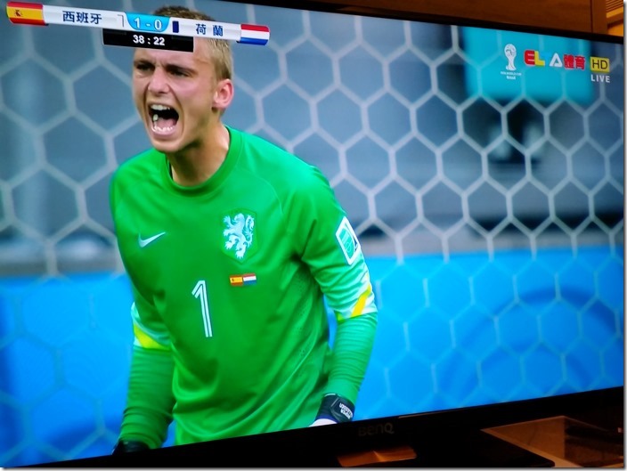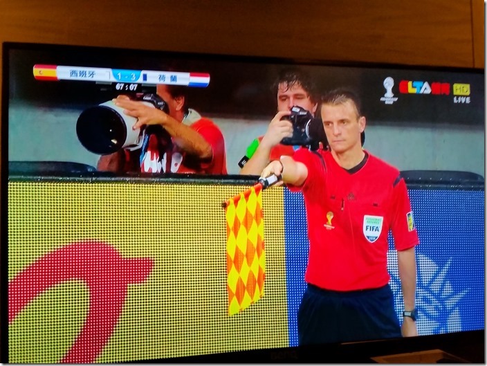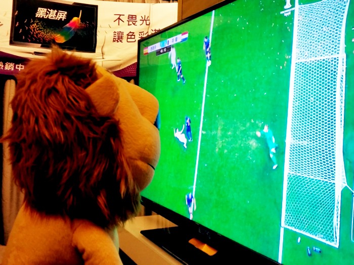 最後分享幾個翻拍自超絢彩黑湛屏65RW6600實況轉播畫面給大家,這場球真的很精彩,搭配上超絢彩黑湛屏電視,在精彩上更添色彩。