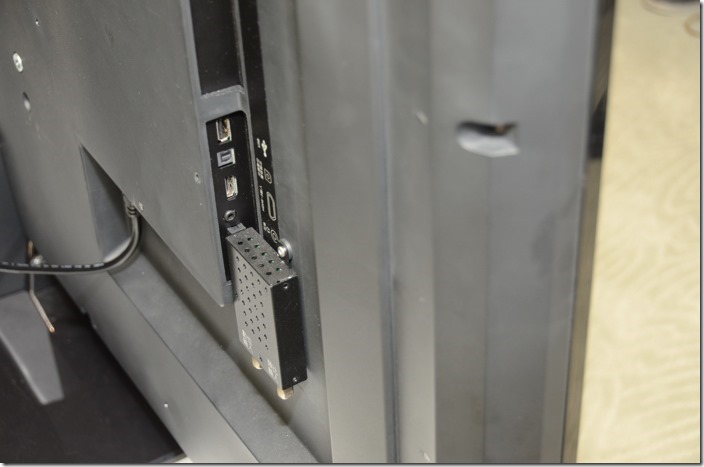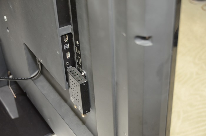 側面有個小盒子,這是隨機一起購買的數位與類比輸入視訊盒,這是讓電視售價便宜的方式之一,所以想要高信價比的朋友應該不會在意這個。另外如果是使用MOD的朋友,也不需要這個視訊盒,直接連接HDMI即可。