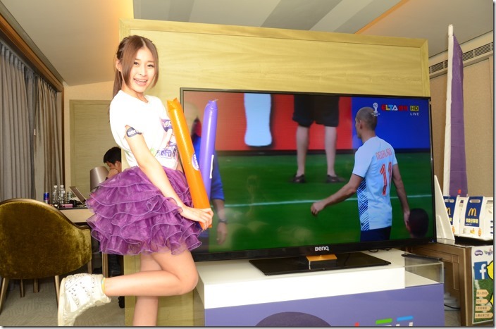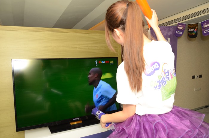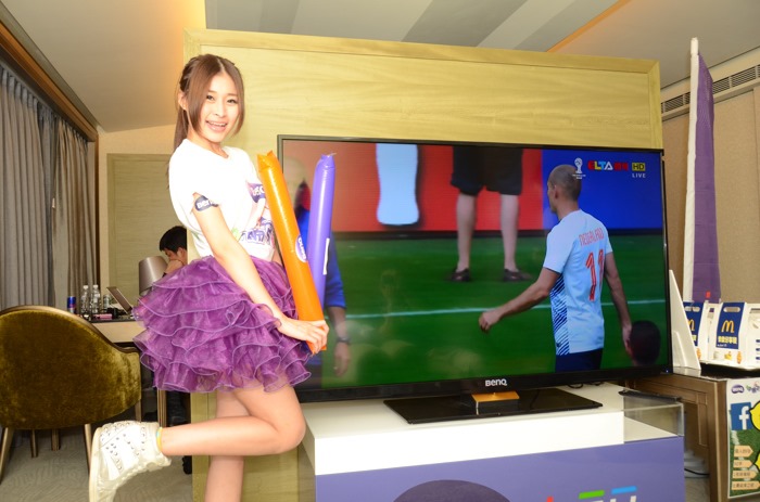 在包廂中使用了BenQ自家65吋超絢彩黑湛屏65RW6600大尺寸LED液晶電視,讓所有參加的朋友都可以感受到大尺寸電視的臨場感,尤其是超絢彩黑湛屏65RW6600具有高透光率來展現廣色域,讓鮮綠的草皮、熱情球迷的多彩服裝與塗鴉、球員的膚色與表情,都可以更真實的呈現。