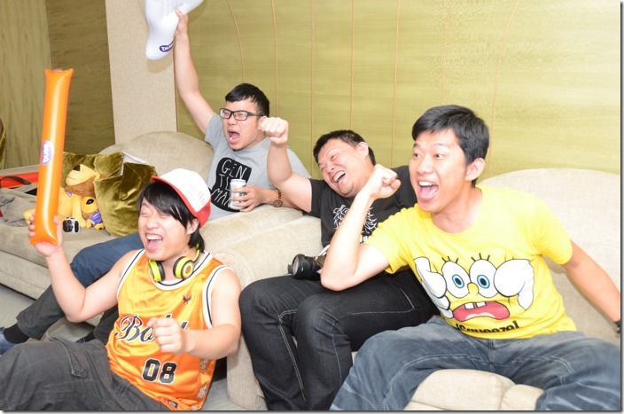 與Kisplay一起觀賞球賽的朋友,其實都是喜歡看球,但是並沒有支持特定球隊(或是說,這兩隊都不是自己最愛的),所以只要有好球,就會開始歡呼,一進球就開始慶祝,氣氛相當好。而這場球賽,總射門次數高達22次,每次都讓我們緊張不已。而球場上的推擠或是假摔,都讓我們笑到肚子痛。這樣三更半夜的歡樂時光,真的已經好久沒有過了。