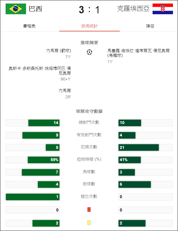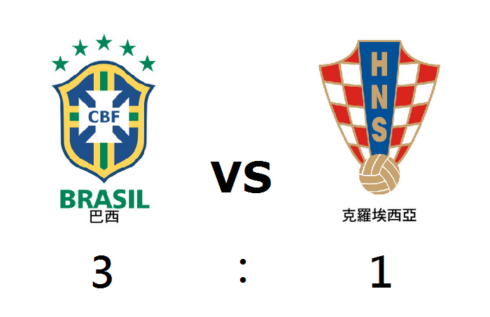2014 世界盃足球賽首日由A組地主隊巴西隊上克羅埃西亞,比分為3:1,巴西獲勝。
