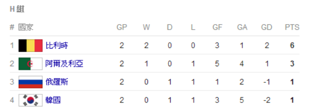 2014 世界盃足球賽 FIFA 最新H組賽程、比賽結果與各隊介紹- 比利時、阿爾及利亞、俄羅斯、南韓