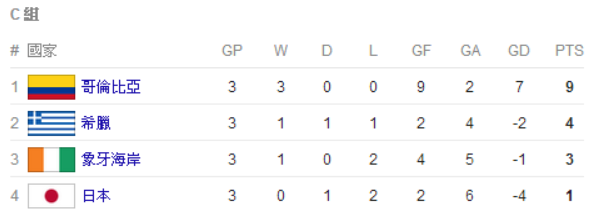 2014 世界盃足球賽 FIFA 最新C組賽程、比賽結果與各隊介紹- 哥倫比亞、希臘、象牙海岸、日本