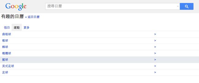 同樣點進去,可以發現其中分著”假日”、”運動” 與”更多” 三大選項。而”運動” 中更細分了曲棍球、板球、棒球、橄欖球、籃球、美式足球以及足球七種類別。選擇好有興趣的運動後,便能從其中挑選喜愛與關心的隊伍賽事來訂閱關注。