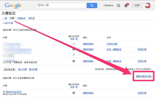 先點進去”設定” 便能從上方 “日曆” 中看見自己所有的日曆,除此之外,右下方還有個 “瀏覽有趣的日曆” 這個選項!