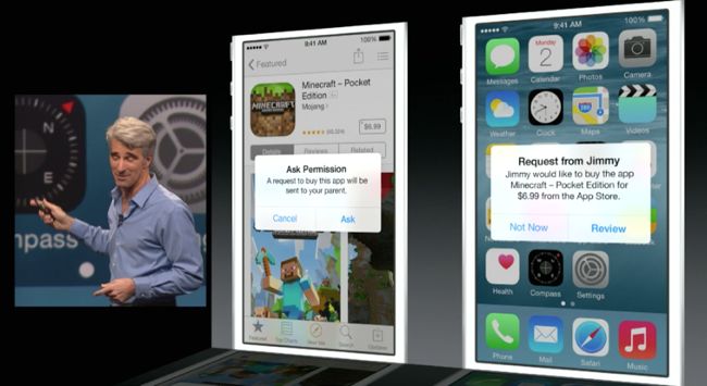 – Family Sharing 可以設定家庭成員來一起分享照片、行事曆、音樂、影片… 等等,還能支援六個家庭成員自己所購買的應用程式。當小孩使用你的信用卡購買應用程式,我們裝置中也會出現是否允許的通知。