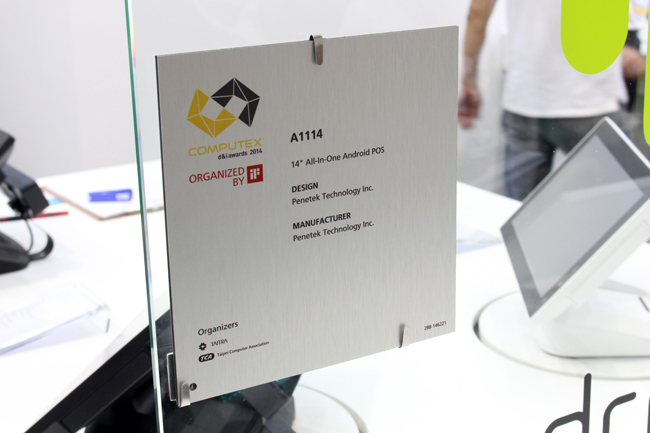 像這個今年有得到 d&i 設計獎 Penetek 鈞鐸科技的 Android AIO POS(A1114)就還滿厲害的。