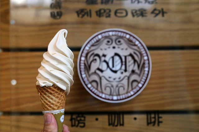 好啦~我承認是天氣太熱,整個就是想吃霜淇淋才進來的,磅咖啡使用的是 NISSEI 日本霜淇淋機,搭配自家熬煮的黑糖醬,不使用人工香料。所以看起來不會是很深的黑糖色,吃起來也是淡淡的黑糖甜香,爽口不膩,夏天吃這個剛剛好。